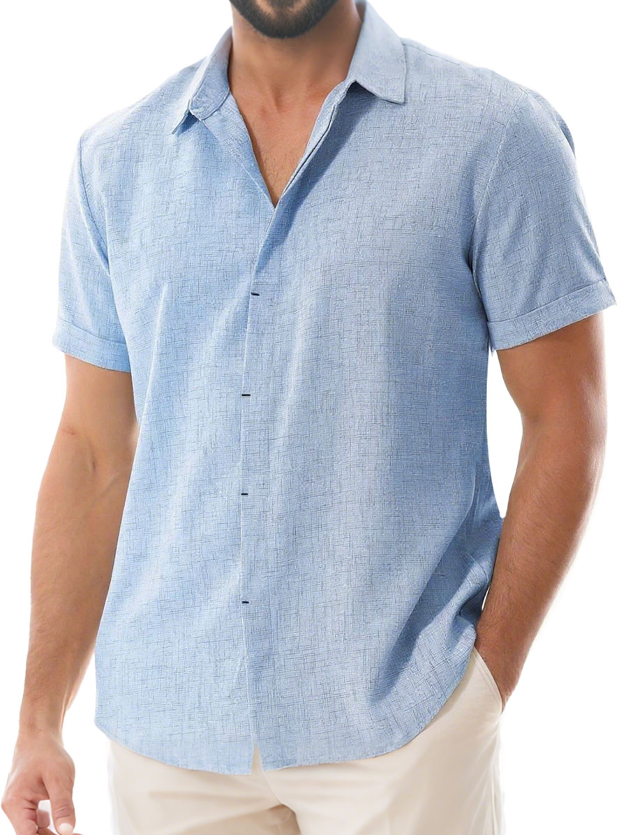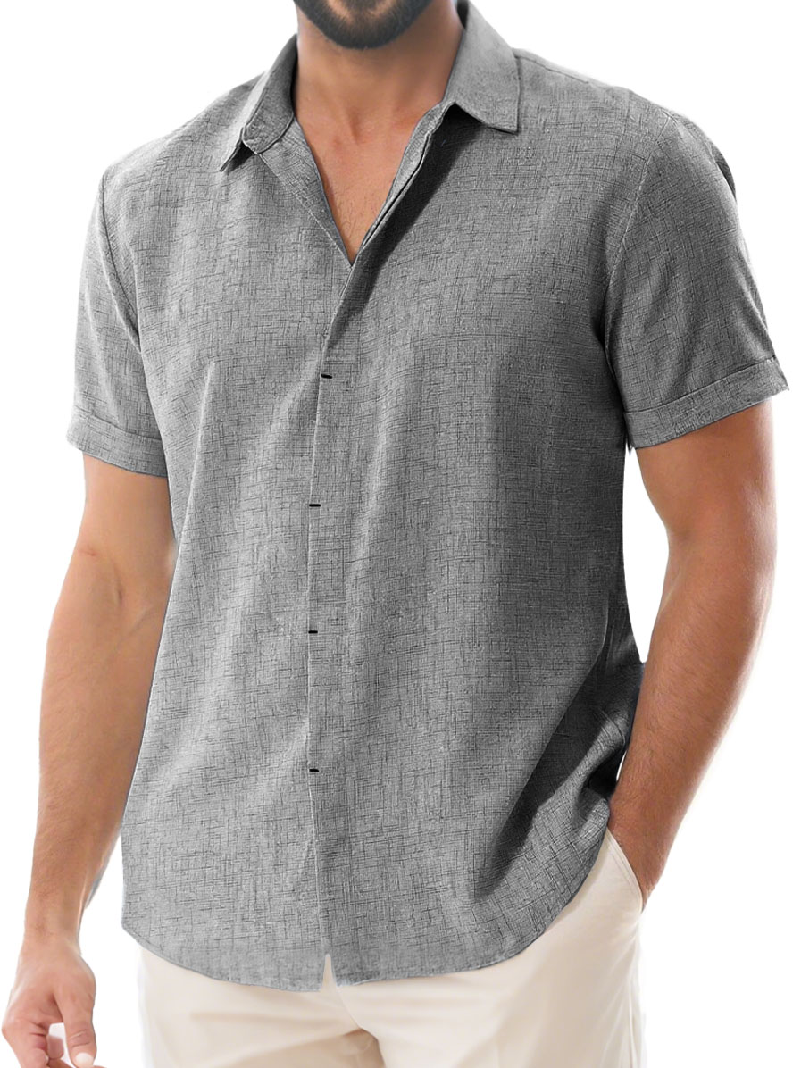 Herren Tägliches Lässiges Imitationsleinen Weites Kurzarm Hemd mit Revers